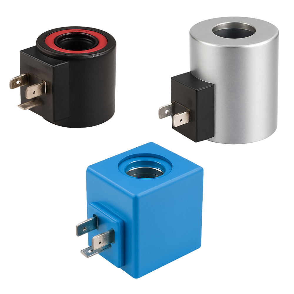 Bobinas para acionamento elétrico de válvulas direcionais.